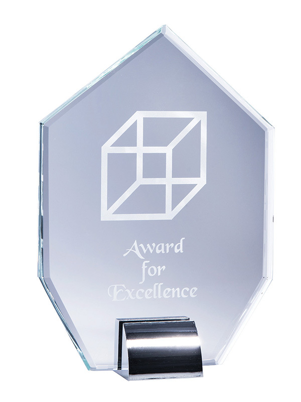 A simple glass award on a metal stand