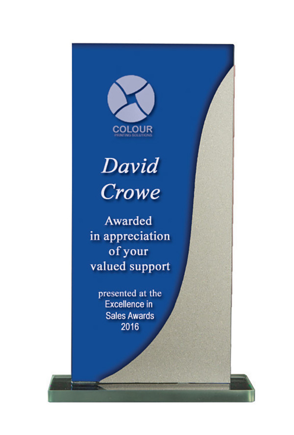This is a budget glass award with an elegant finish.