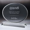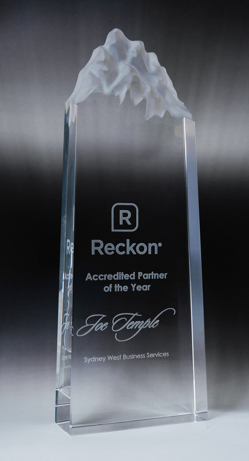 A unique crystal award with a frosted top section in the shape of a mountain peak. Perfect for acknowledging those to strive to reach the top!