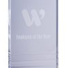A heavy clear crystal award in a unique shape!