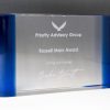 A unique elegant sculpted crystal award in the shape of a decorative trophy cup